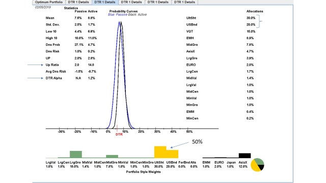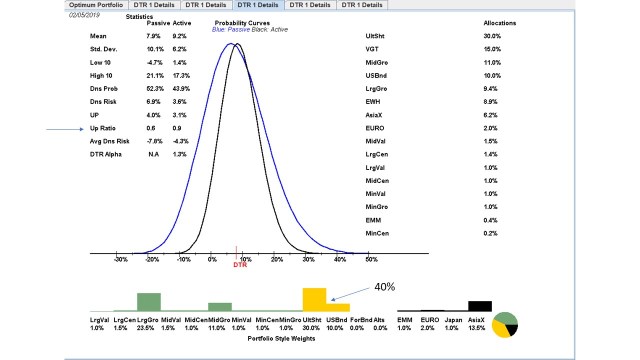 It now projects 20% more downside risk than upside potential if only passive indexes are used. Even selecting a combination of active ETF’s has 10% more downside risk than upside potential.