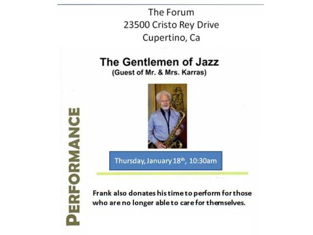 Gordon Fels (Flute) and Frank performing a sample of four of their favorite jazz standards at the Vi Retirement Community in Palo Alto.